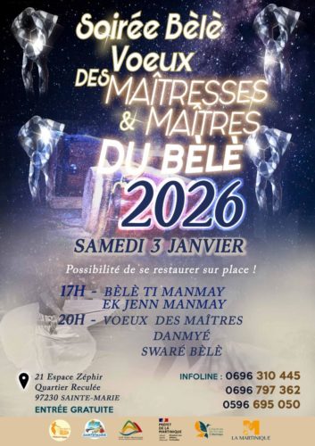 La Ville de Sainte-Marie vous invite à une grande soirée Bèlè placée sous le signe de la tradition, du partage et de la transmission culturelle. Samedi 3 janvier 2026 21