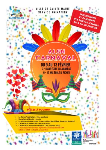 La Ville de Sainte-Marie propose des centres de loisirs spéciaux Carnaval pour les enfants de 3 à 12 ans, du 9 au 13 février 2026, dans une ambiance festive et