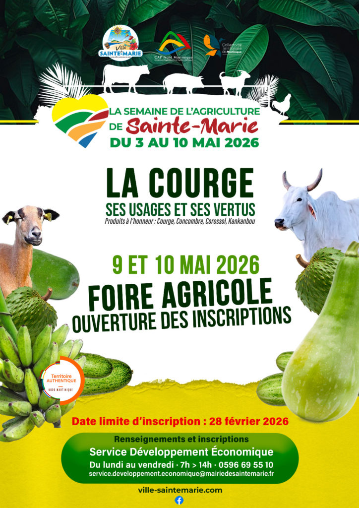 La Ville de Sainte-Marie organise la Semaine de lâAgriculture, du 3 au 10 mai 2026, un temps fort dĂ©diĂ© Ă la valorisation des savoir-faire agricoles et des productions locales.