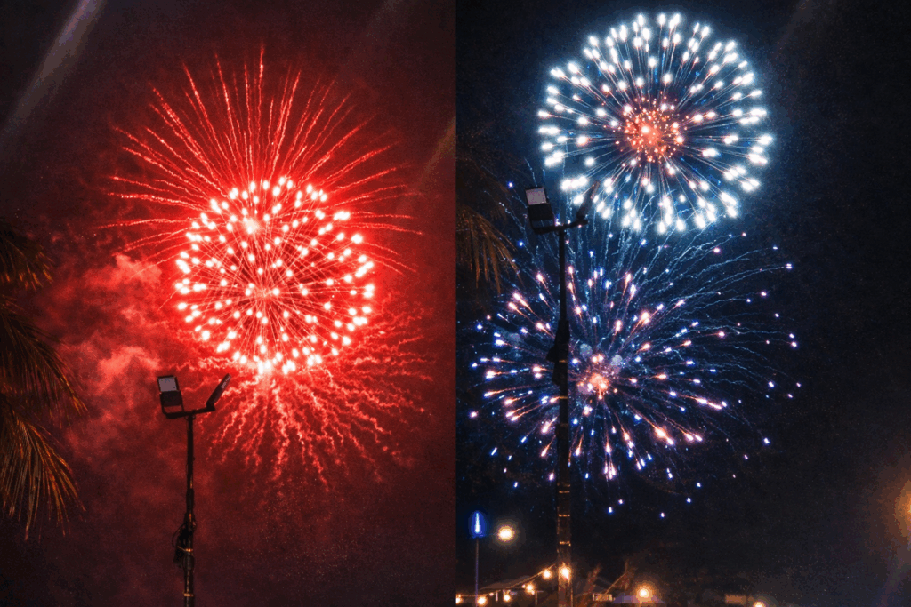 Les regards levΓ©s vers le ciel, les spectateurs ont ensuite pu admirer le spectacle pyrotechnique offert par la Ville. AprΓ¨s cette parenthΓ¨se lumineuse, le concert a repris pour une nouvelle heure de chants, oΓΉ le public, en chΕur, a repris les cantiques de NoΓ«l et les traditionnelles ritournelles du chantΓ© NoΓ«l martiniquais.