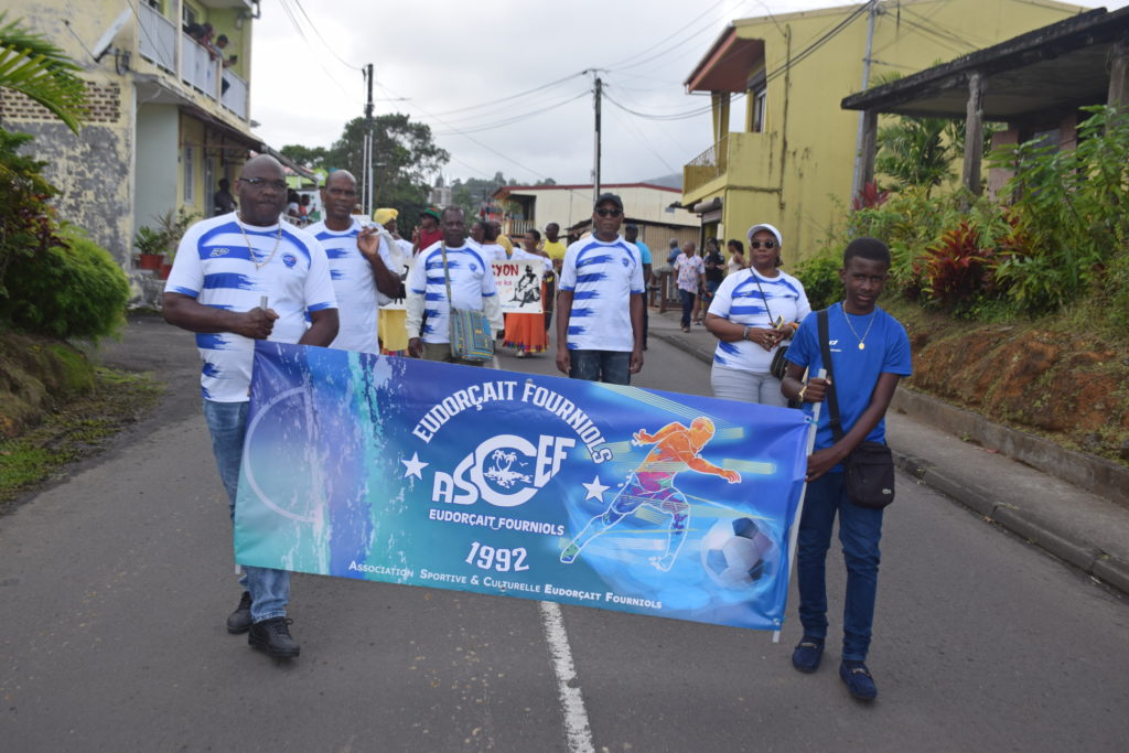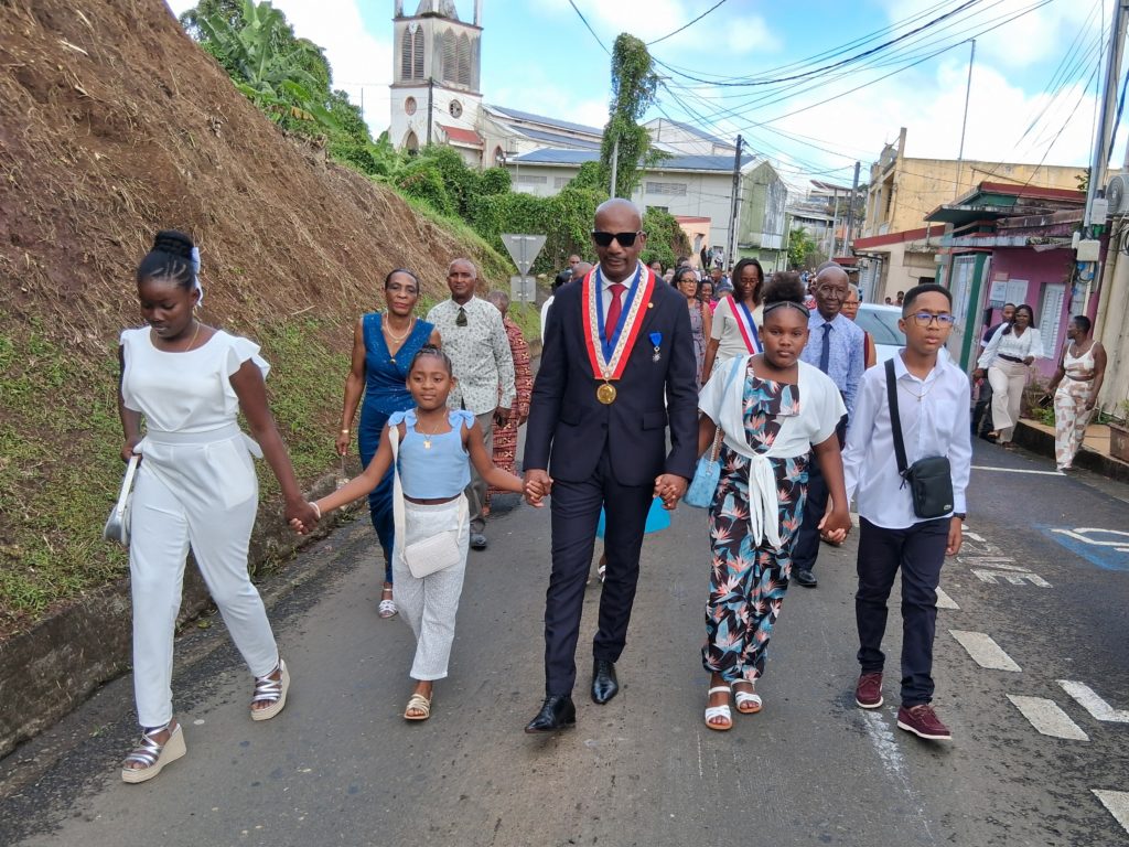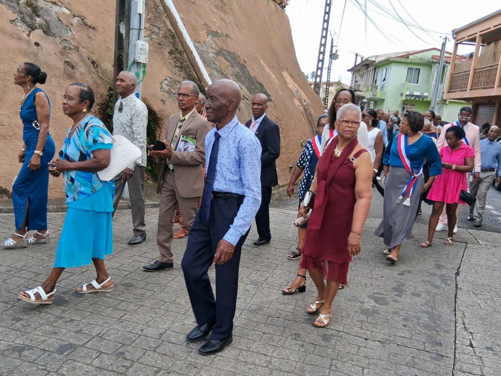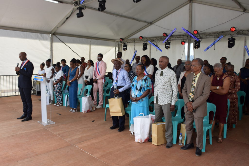 La journée a débuté à 9h par une messe célébrée en l’église paroissiale Saint-Paul du Morne des Esses, suivie du défilé traditionnel réunissant le Maire et son Conseil municipal, les invités et citoyens d’honneur, les associations, accompagnés par les groupes à pied James Band et Flèch’ Bambou.