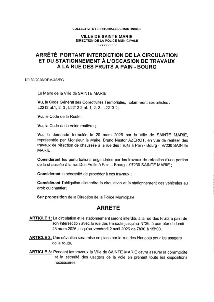 La Ville de Sainte-Marie vous remercie pour votre comprĂ©hension face Ă la gĂȘne occasionnĂ©e.