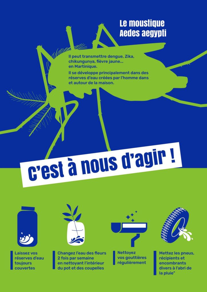 Le moustique Aedes aegypti, présent sur notre territoire, peut transmettre des maladies comme la dengue, le chikungunya ou le Zika. Il se développe principalement autour de nos habitations.