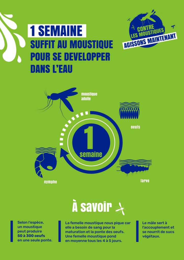 Saviez-vous qu’il suffit de 7 jours pour qu’un moustique se développe dans une simple eau stagnante ?