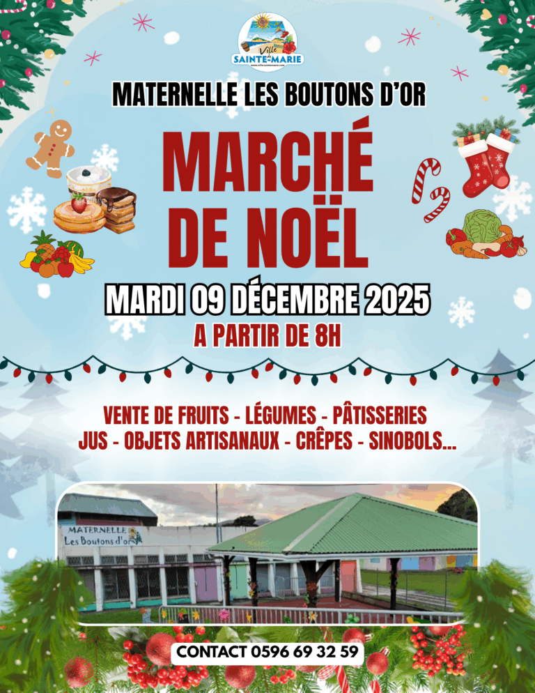 La maternelle Les Allamandas vous invite ร son traditionnel marchรฉ de Noel le mardi 16 dรฉcembre 2025 ร partir de 8h30. Vous y trouverez des pรขtisseries, confiseries, fruits et lรฉgumes,