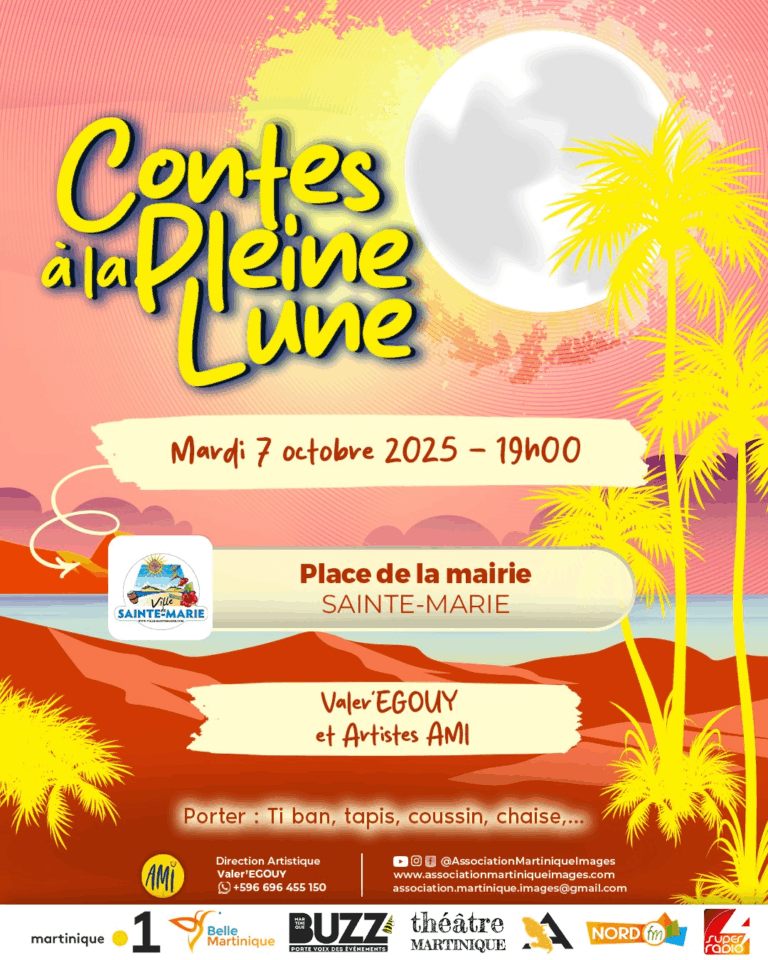La Ville de Sainte-Marie vous invite à une soirée magique sous la lune ! Mardi 7 octobre 2025 19h00 Place de la Mairie – Sainte-Marie Au programme : Contes et