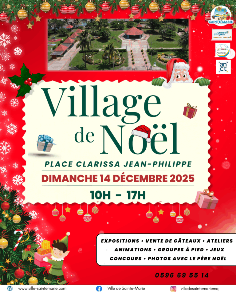 La Ville de Sainte-Marie vous invite à plonger dans la magie des fêtes à l’occasion du Village de Noël, le dimanche 14 décembre 2025, de 10h à 17h, sur la